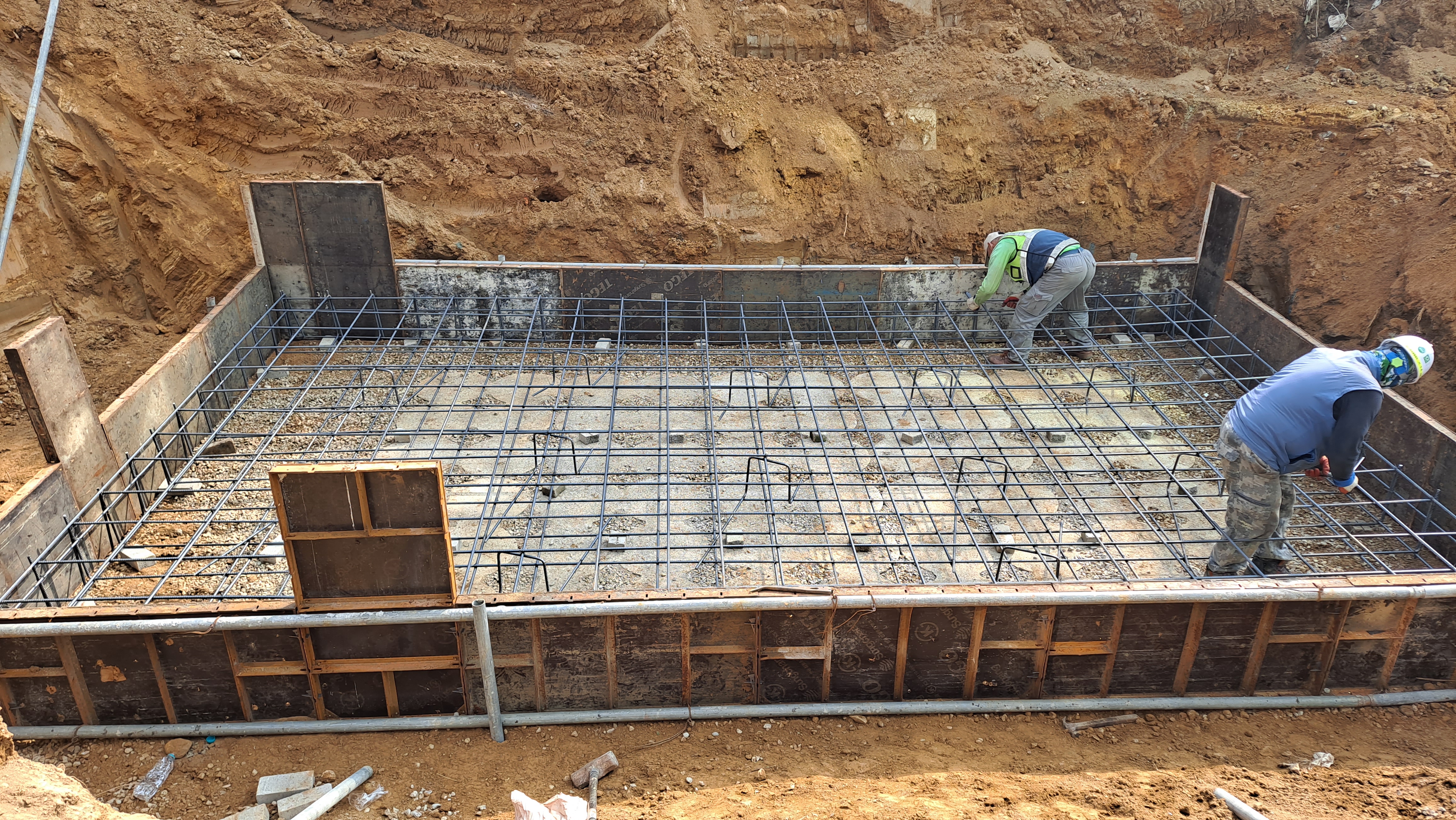 1. 기초하면 철근 간격재위에 배력근(장변방향)을 배치한다.